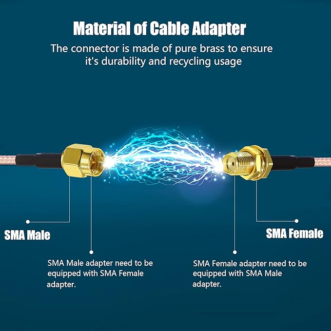 耐久性と性能: コネクタは純粋な真鍮で作られており、耐久性とリサイクル使用を保証します。ケーブルの材質は RG316 で、優れた導電性と信号伝送を保証します。