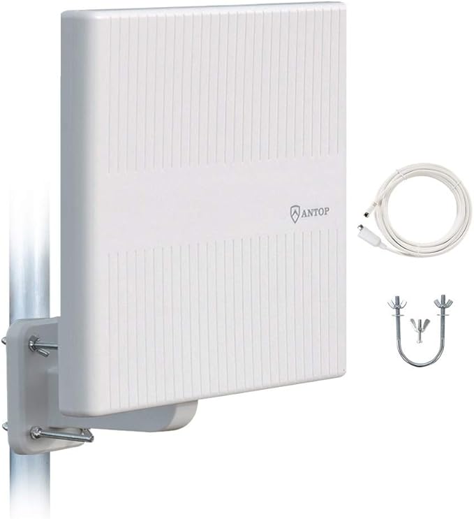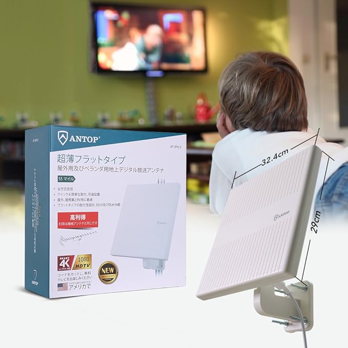 ANTOP 地デジ 屋外アンテナ 室外HD TV 360度全方位受信 UHF対応 平面 88KM受信範囲 抗UVコーティング RV 5m同軸ケーブル付き 簡易設置 超軽量 フラットパネル AT-413