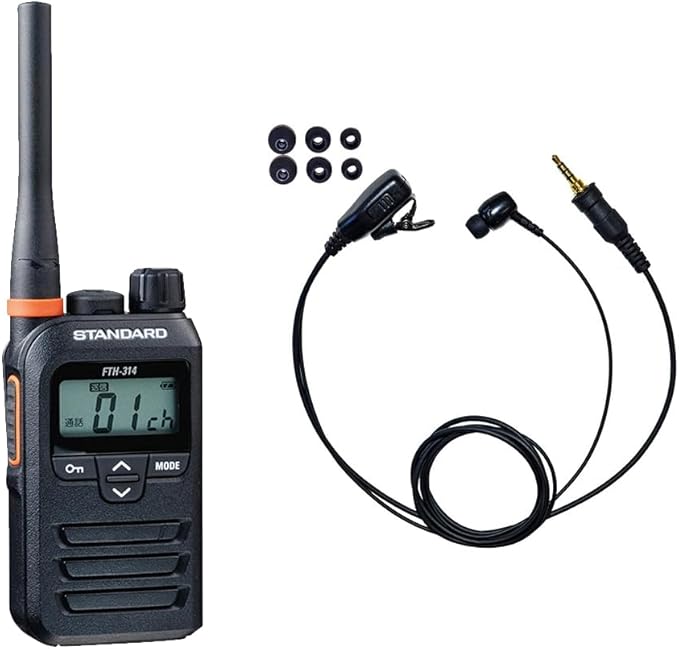 スタンダード STANDARD 防塵・防水・中継器対応 特定小電力 トランシーバー FTH-314 ノーマルアンテナ + 対応 BLUE CENTURY イヤホンマイク セット(カナルイヤホン型イヤホンマイク【W019H】セット,1台)
