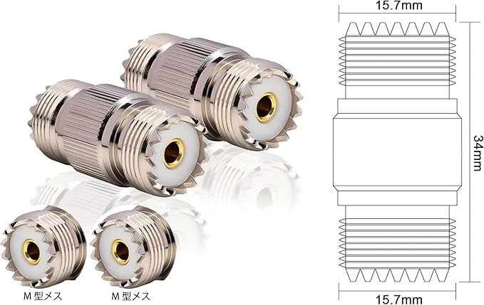 M型コネクタ4個パック MJ-MJ SL16-KK互換 UHFメス SO239 中継コネクタ UHFメス-メス アダプタ M型同軸ケーブル延長用 アマチュア無線用 3.5x1.5x3.5cm,50 g
