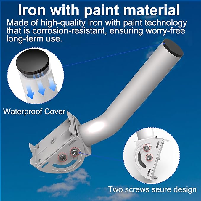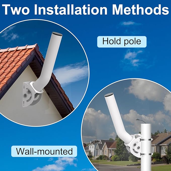 120度調整に対応し、信号受信を最適化:このアンテナポールの支杆は、上下120度の調整が可能で、異なる設置ニーズや環境に応じてアンテナの角度を調整できます。CPEを取り付けた後、支杆の角度を調整することで、信号受信強度を最適化し、安定したネットワーク接続を確保できます。