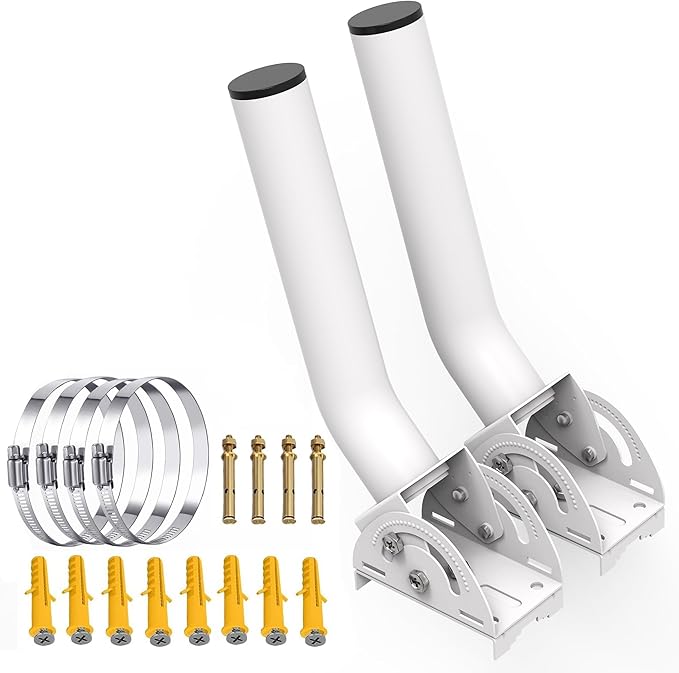 ユニバーサル 調節可能 テレビアンテナマウント 11インチ 耐候性 Jポール ワイヤレスブリッジブラケットマウント ポールマウント APアクセスポイント クライアントブリッジ CPE用 外部アンテナ取り付けポールブラケット 2個パック ホワイト