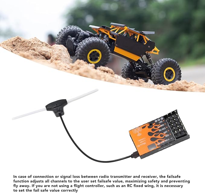 フェールセーフ: 無線送信機と受信機間の接続または信号損失が発生した場合、フェールセーフ機能はすべてのチャンネルをユーザーが設定したフェールセーフ値に調整し、安全性を最大限に高め、フライアウェイを防止します。