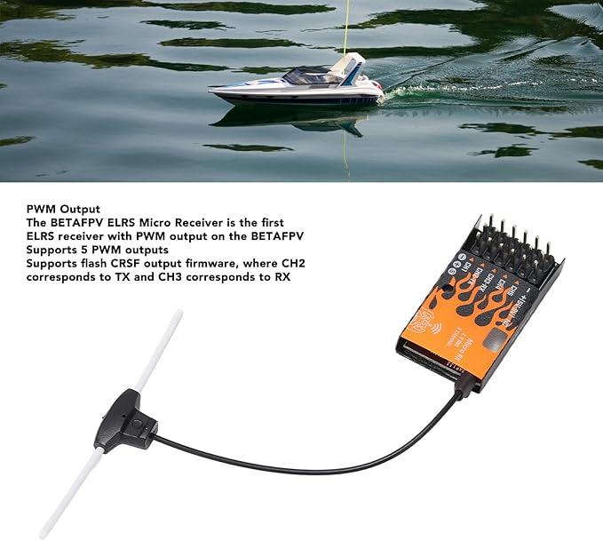 プロフェッショナルなデザイン: PWM 出力を備えた ELRS レシーバー。 5つのPWM出力をサポートします。また、CH2 が TX、CH3 が RX に対応する場合、フラッシュ CRSF 出力ファームウェアもサポートします。