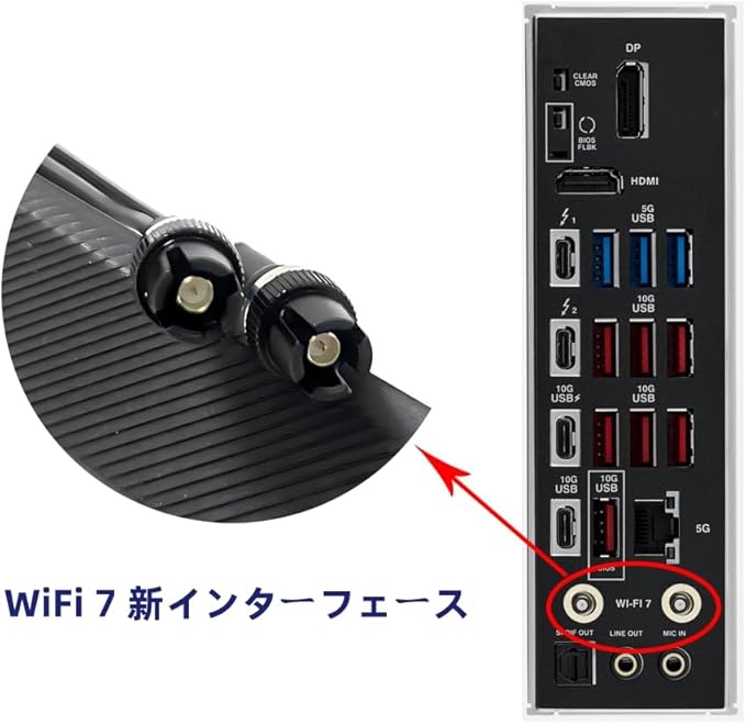 WiFi 7アンテナ-トライバンド802.11BE Bluetooth5.4 WiFiルーター Tri-band 磁気ベース延長ケーブル付き 320MHz ASUS 用 ROG TUF B840 B840M B850 B850M B860 B860M X870 WiFi 6 WiFi6E ASUS 用 ROG ゲーミングマザーボード-拡張可能ルーター WiFi 7 PC