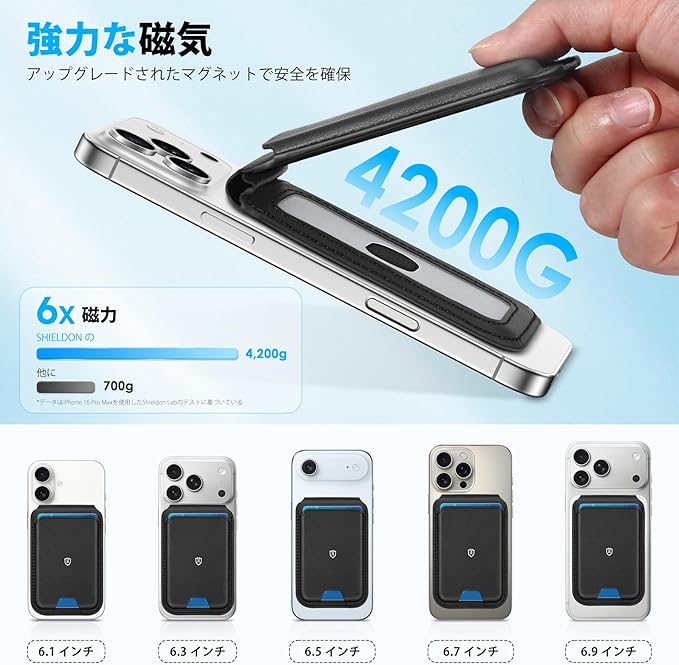 SHIELDON スマホスタンド カードケース 本革レザー 磁力吸着 角度調節可 6枚カード収納 [RFIDブロッキング] 磁力ケースとiPhone17/16/15/14/13/12/Plus/Pro/Pro Max/Airシリーズ対応 ブラック