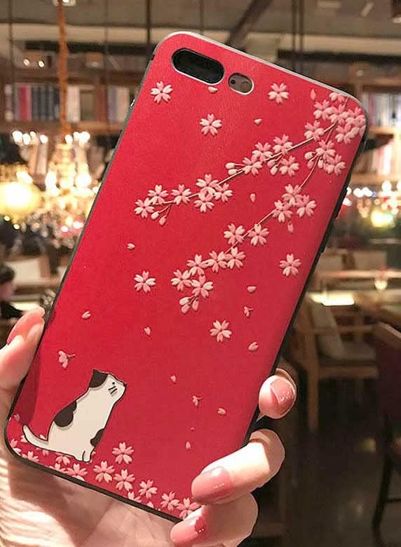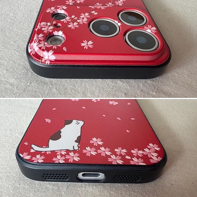 KOLO【猫と桜】iPhone対応 17 Pro Max スマホケース ねこ ネコ 和柄 かわいい イラスト カバー(赤) iPhone17 Pro Max