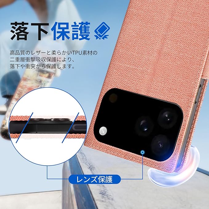 【細部へのこだわり/全面保護】内側と外側の細部まで丁寧に設計されています。TPUインナーシェル内部のボタン位置を丁寧に設計し、保護ケースを装着した後でも操作しやすく、スムーズで快適な操作体験をもたらします。TPUインナーシェルの底部には吊り下げ穴も付いており、お気に入りのアクセサリーを結んで個性をアピールできます。高品質PUレザーと柔軟TPU素材による二重構造で、スマートフォンをしっかりと保護します。安心してお使いいただける一品です。