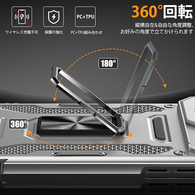 【スタンド機能】リングに指を1本通すことで、片手でスマホを操作でき、落下を防止することができます。ケースを横置きにするとスタンド機能になり、持たず動画鑑賞などを楽しむことができます。