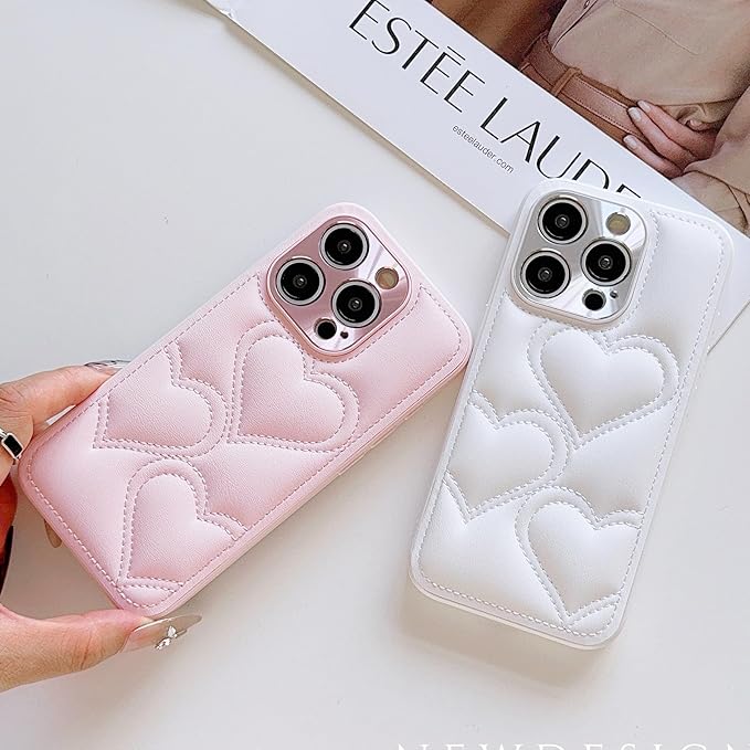 スマホ ケース 韓流 対応 iPhone 17 Pro Max ケース シンプル 可愛い ハート柄 手つくり アイフォン おしゃれ 耐衝撃 カメラ保護 背面 カバー (ピンク, For iP 17 Pro Max)