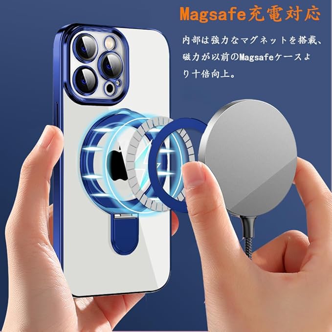 【iPhone 17 Pro Max 用 Magsafe搭載・隠れる式スタンドケース】過去のスマホスタンドを覆すMagsafe搭載の隠れる式スタンドケース。Magsafe充電しながらスタンドとして使える、途中で電源が切れてしまう心配は一切いりません! ワイヤレス充電対応。