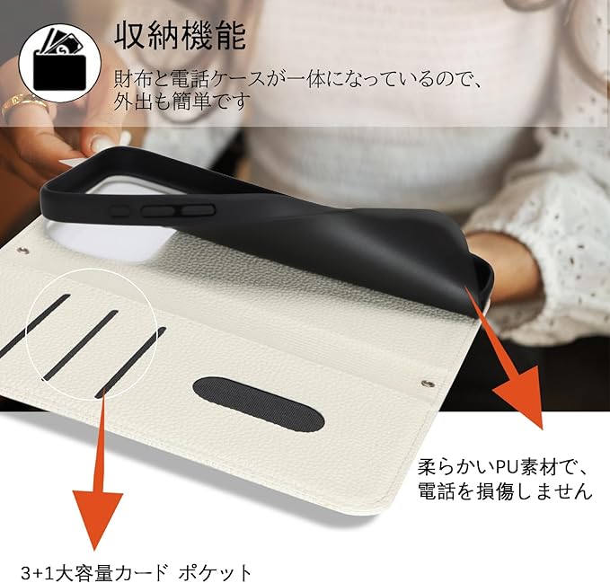 【収納機能】ケース内側に実用性のカード入れポケット 3、内側ポケット 1。カード類や紙幣 、名刺、免許証などを入れることができ、日常の生活に便利。