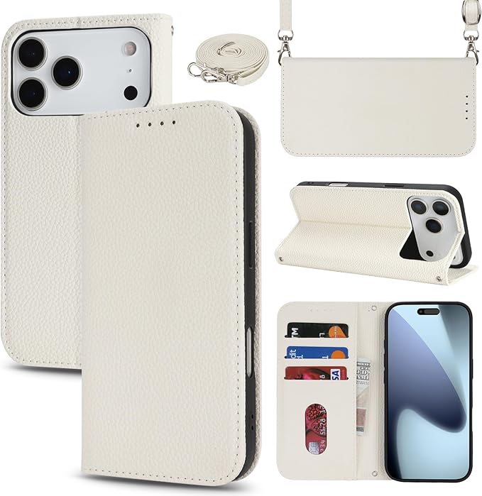 【Hamany】 対応 iphone 17 pro max ケース 手帳型 ショルダー アイホン17プロマックスケース スマホストラップ カード収納 財布型 スタンド機能 スマホケース いphone 17promax マグネット式 女性 肩がけ 首掛け 斜め掛け ショルダーバッグ 携帯カバー -アンバー ホワイト