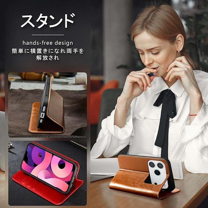 【自由の機能さ】:ケースを装着ままで携帯のボタンを全てスムーズに使用し、スタンド機能も搭載し、横置きしてお好きな角度で調整できます。