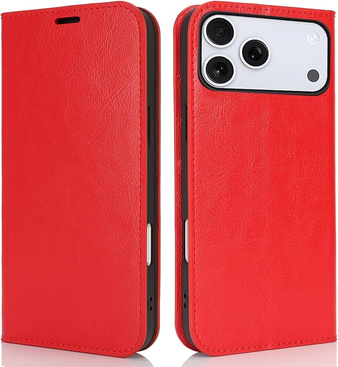 SKIASE iPhone 17 Pro Max 用 ケース 手帳型 本革 高級レザー マグネット無し アイフォン17プロマックス 携帯カバー 財布型 横置きスタンド機能 いphone17ProMax カード入れ カード収納 耐衝撃 全面保護 軽量 薄型 落ち着いた色 レッド