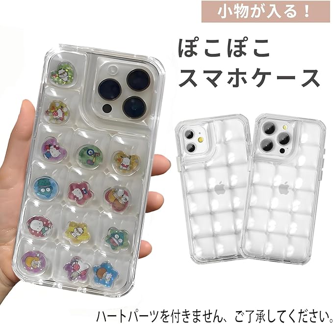 【透で明感が高くシャカシャカケース】透明感が高くで ぽこぽこスマホケースは、個性を存分に表現できるアイテム。ケースには最大14個のスペースがあり、その中におはじきやビーズ、デコ系アイテムを自由に詰め込めます。あなたの好きなアイテムでオリジナルのデザインを楽しんでください!シェイカーケースとしても最高です。ケースを振ると、シャカシャカ、サラサラと心地よい音を立て、ストレス解消やリラックス効果も期待できる、癒しのアイテムです。