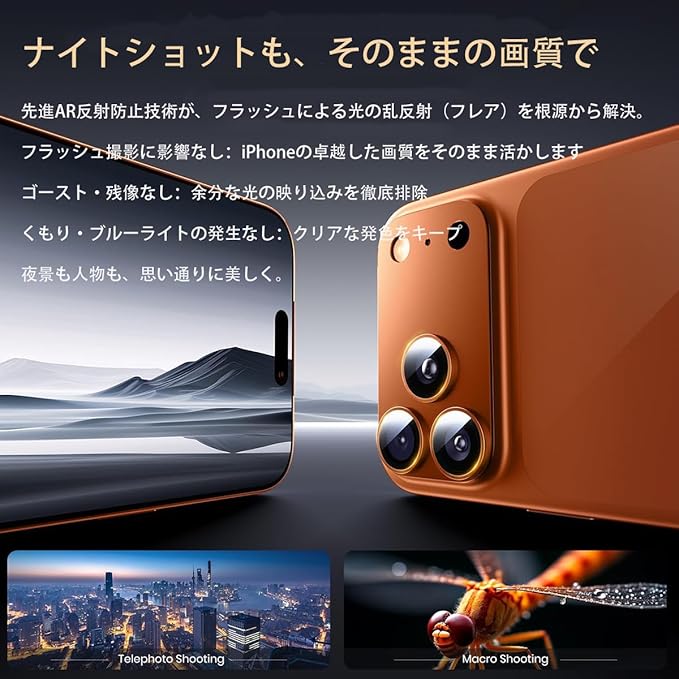 【露出オーバー防止 & 超高透過率】: フラッシュ乱反射を軽減する黒縁デザインで露出オーバー防止。光学ARコーティングで光透過率99.99%を実現し、プロ級の写真撮影をサポート