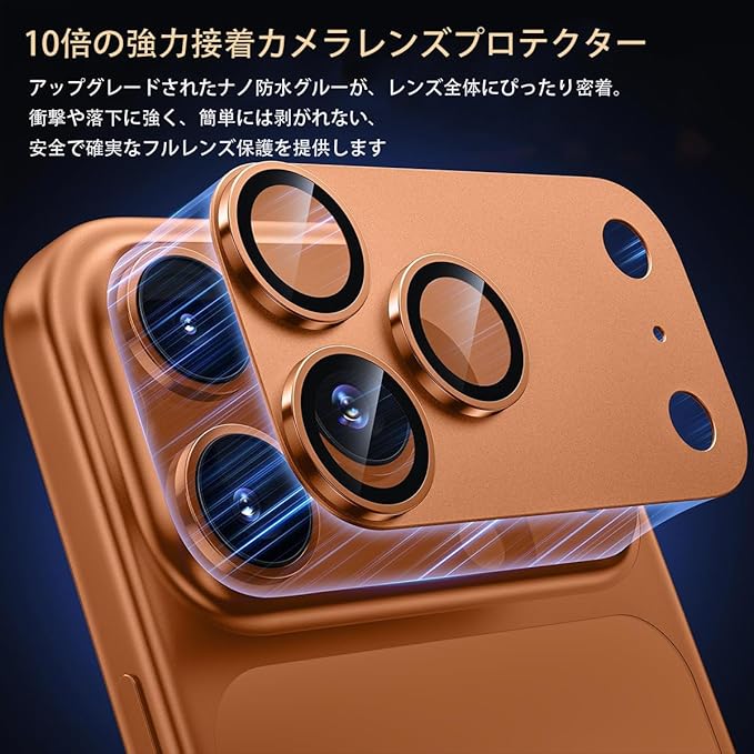 いfor iphone 17 Pro Max カメラ保護 全面保護 9Hサファイアガラス&航空用アルミ合金製 防指紋 高透過率防傷 耐衝撃 露出オーバー防止 - for iPhone 17 Pro Max 専用 オレンジ色