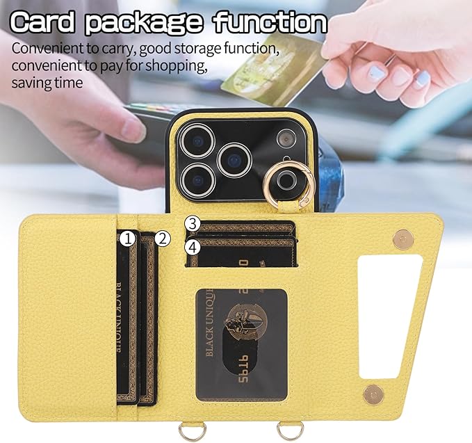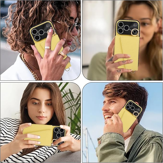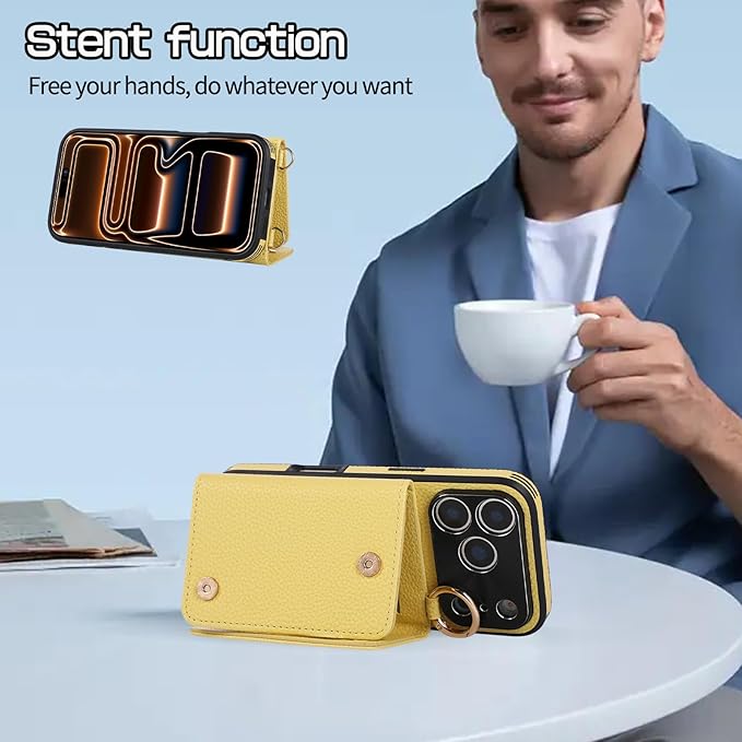 Pelanty 縄掛けケース For iPhone 17 Pro Max 手帳型ケース for iPhone17 Pro Max ケースリング 携帯カバー 肩掛け斜めがけショルダー ストラップ付き PUレザー+TPU アイフォン17プロ Max 背面カバー お札入れ小銭入れ 財布型ICカード収納 スタンド機能 ボタン磁気 耐衝撃 落下防止 イエロー