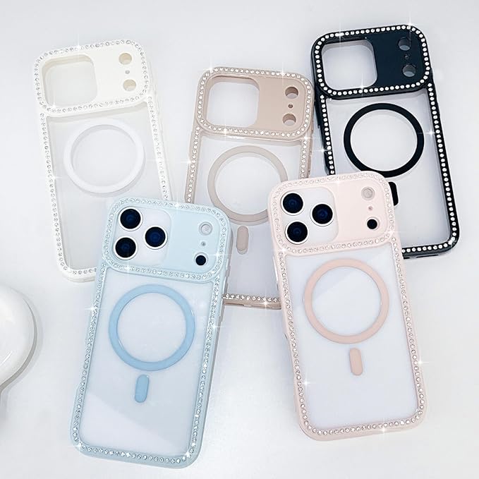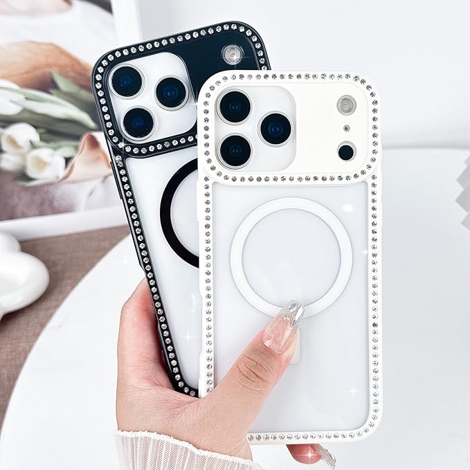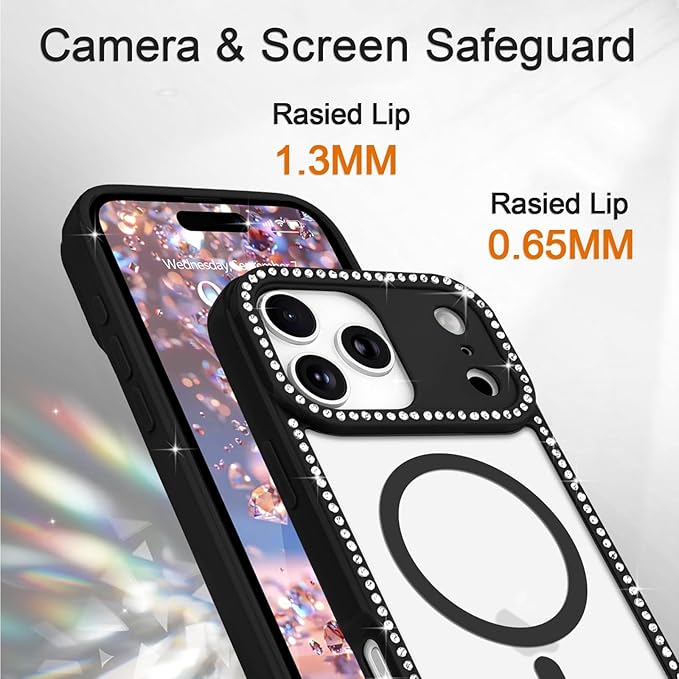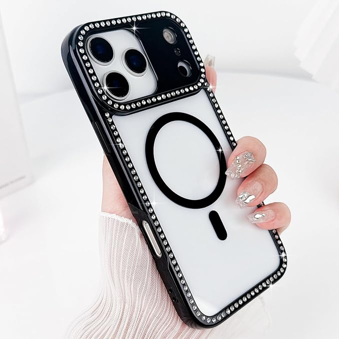 LCHULLE 用の iPhone 17 Pro Max ケース MagSafe 対応 透明 キラキラ ラインストーン かわいいクリア マグネットカバー マグセーフ 対応 女性 韓国 黄ばみ防止 軽量 薄型 耐衝撃 カメラ保護 用の アイフォン 17 Pro Max スマホケース (ブラック)