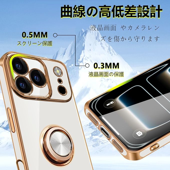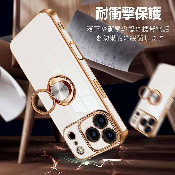 対応iPhone 17 pro max ケース リング 耐衝撃 いphone 17pro max リング付き カバー いpほね17 promax TPU 車載ホルダー ストラップホール付き メッキ加工 スマホケース ホワイト