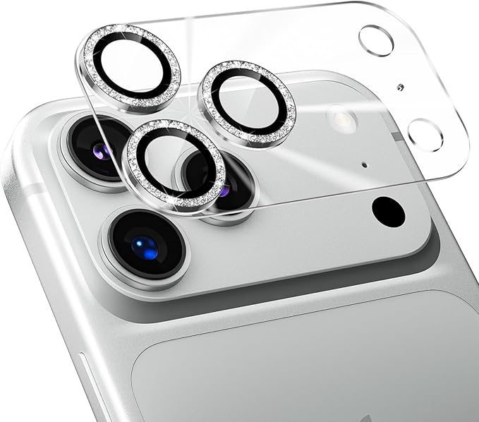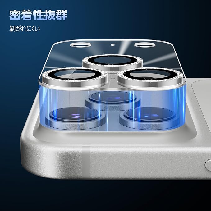 カメラフィルム iPhone 17 Pro Max 用 カメラカバー キラキラ 9H強化ガラス アルミ合金 アイフォン17pro max用 カメラ保護 ピカピカ キズ防止 耐衝撃 高透過率 黒縁取り 露出オーバー防止 極薄 いphone17 プロ マックス レンズカバー プロテクター シルバー