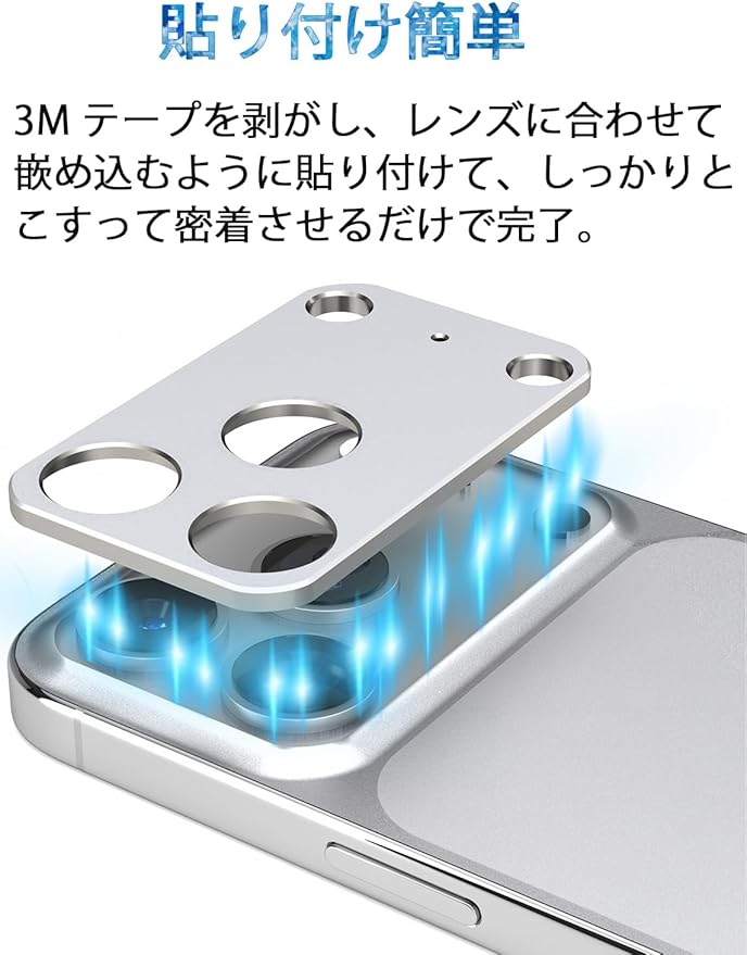 【嵌め込み式・簡単に貼り付け】レンズに合わせて嵌め込むように貼り付けて、密着ようにレンズカバーを押さてだけで完了します。初心者でも簡単にレンズカバーを貼り付けます。粘着力の強い3Mテープを採用しており、脱落しにくいで長時間の使用に耐えます。