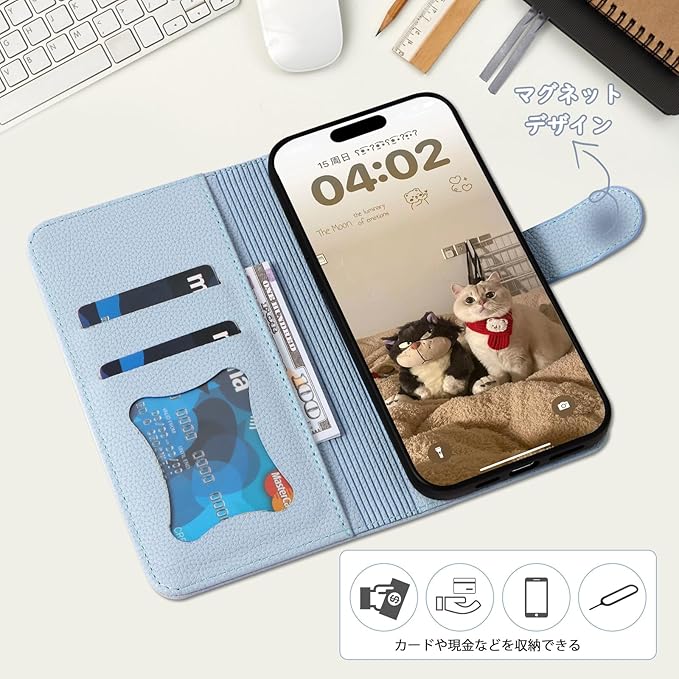 収納機能 2つのカードポケット付きのRosbtibケースには、ICカードや免許証などが収納でき、抜群な収納機能、通勤やお出かけに便利です。近所の買い物や犬の散歩などでは、小銭や紙幣まで入るお財布ポケット収納付きスマホケースがあり、スマホ1台だけで身軽に外出できます。