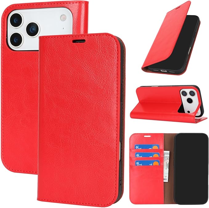 Pelanty for iPhone 17 Pro Max ケース手帳型 for iPhone17 Pro Max 携帯カバー 手作り 本革レザー 財布型カバー カード収納 スタンド機能 耐衝撃 マグネット無し 開閉ベルト無し アイフォン17プロ Max スマホケース【選べる4色】レッド
