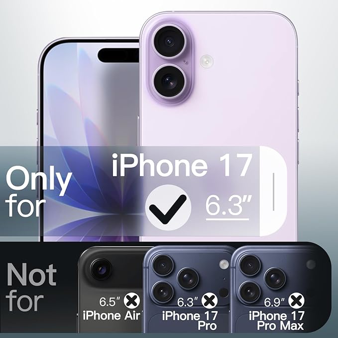 [完璧にフィット] iPhone 17 6.3インチ用に完璧に設計されており、おデバイスがかさばることはありません。注:iPhone Air / 17 Pro / 17 Pro Maxには対応していません。