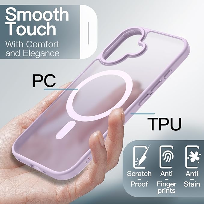 JETech iPhone 17 6.3インチ用 マグネットケース MagSafeに対応 半透明のマット背面 薄型 ミニマリスト 耐衝撃 フォンカバー (ラベンダー)