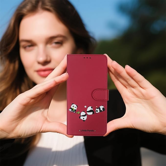 スマホケース 手帳型 と互換性のある いphone17promax ケース 手帳型 iPhone 17 Pro Max 携帯ケース iphone17promax ケース iPhone17プロマックス カバー あいふおん17ケースプロマックス 耐衝撃 磁気スイッチ 横置き機能 財布型 カード収納 かわいい小さなパンダ 適用の iphone17プロマックスケース -レッド