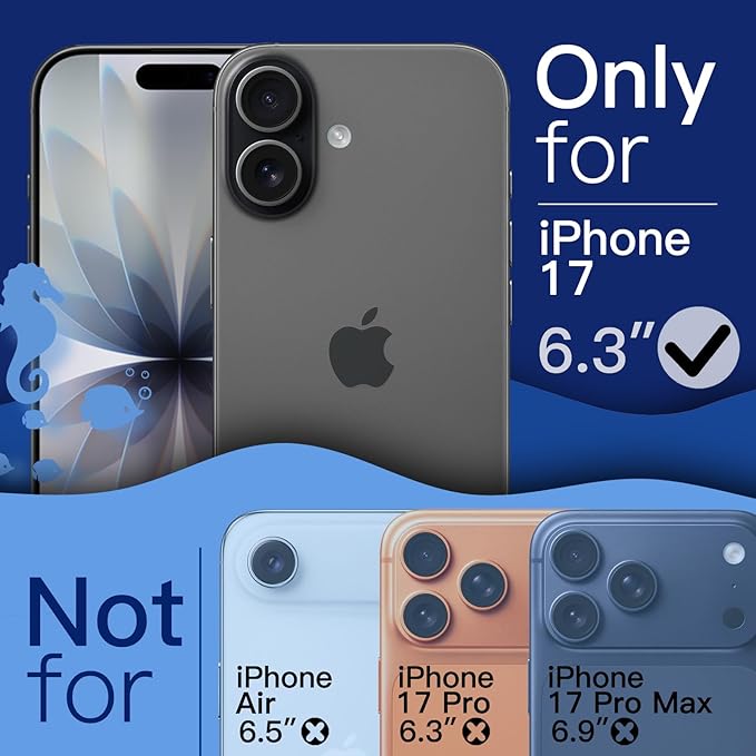 [互換性] iPhone 17 6.3インチ専用に設計されています。注:iPhone Air / 17 Pro / 17 Pro Maxには対応していません。ご購入前におデバイスのモデルをよくご確認ください。さらに、黄ばみ防止の背面は超透明で、おデバイスの絶妙なロゴを美しく見せます