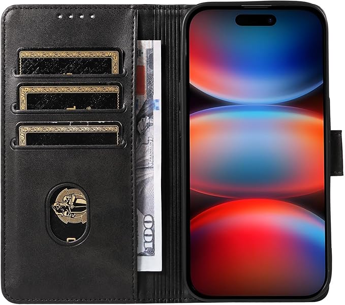 【カードスロット3つ + キャッシュポケット1つ】: このレザーケースは、携帯電話ケースとウォレットの完璧な組み合わせです。ID、クレジットカード、名刺用のカードスロットが3つと、現金と紙幣用のサイドポケットが1つあります。かさばる財布を持ち歩かずに快適に外出できます。さらに、カードの取り出しを容易にする切り欠き付きの透明ウィンドウも付いています。