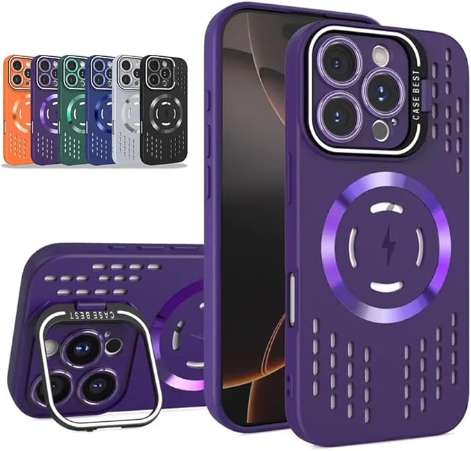 for iPhone 17 Pro Max 用ケース MagSafeアクセサリー対応 スマホケース マグセーフ カバー マ新型カメラスタンドカップルシリカゲルケース隠し携帯スタンドレンズフィルム保護 高放熱 [耐衝撃] [柔軟TPU液体シリコン] [ソフトタッチ] [レンズの全面保護] [指紋防止] [落下防止] [滑り防止]-17PM ダークパープル