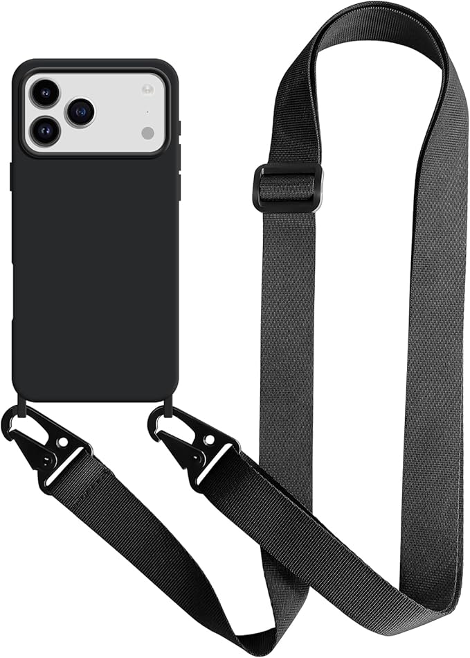 UnnFiko For iPhone 17 Pro Max ケース ネックストラップ スマホケース 蛍光色 シリコン アイフォン 17 Pro Max ケース シンプル ソフト 保護カバー 携帯ストラップ 紐付き 斜めがけ (iPhone 17 Pro Max,ブラック)