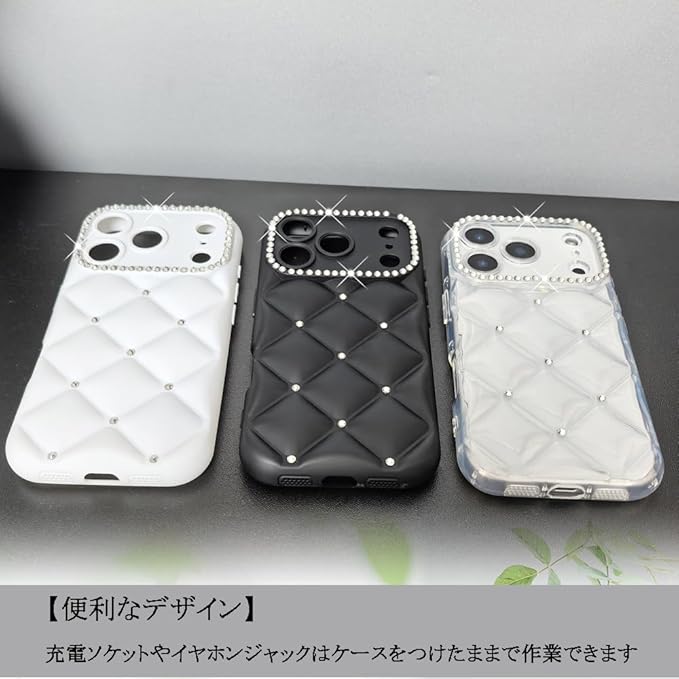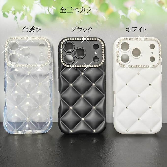 スマホケース 対応 iPhone 17 Pro Max ケース クリア かわいい キラキラ ブリンブリン 菱形 凹凸 ストーン ハードかばー 薄型 軽量 女性人気 キャラクター 滑り止め 指紋防止 ストラップホール付き 衝撃吸収 アイフォン17プロマックス 携帯ケース (クリア)