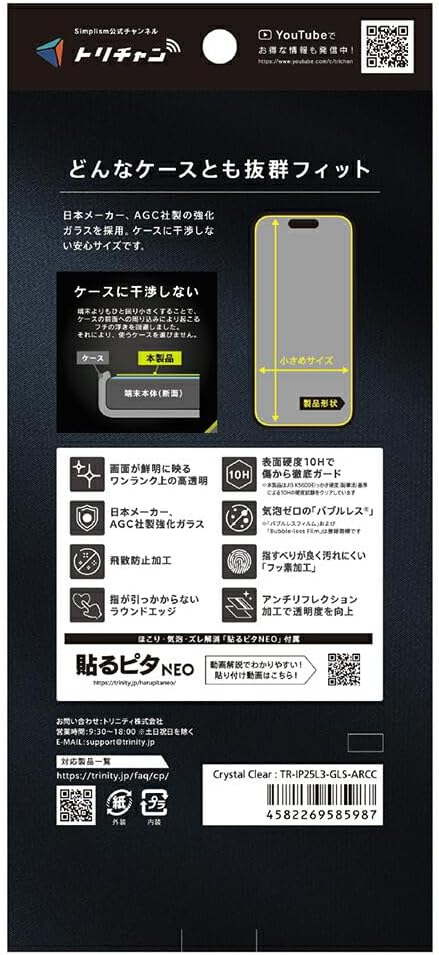 Simplism シンプリズム iPhone 17 Pro Max ケース干渉しない 超透明 画面保護強化ガラス TR-IP25L3-GLS-ARCC