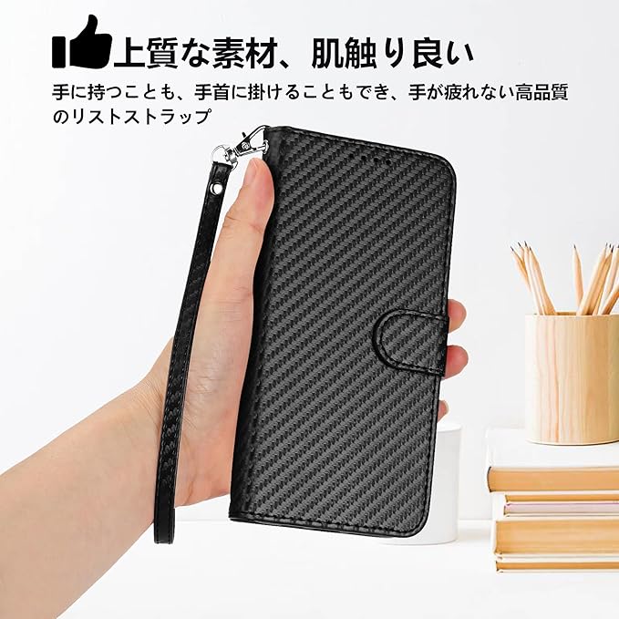 【上質な素材】このケースの外装は高品質のPU素材とカーボンファイバーの質感で作られており、手に馴染み、傷防止、指紋防止、優れた熱と衝撃吸収性を持っています。内側はソフトなTPU素材で携帯電話を保護し、着脱も簡単です。また、ケースは携帯電話を360 保護し、カメラレンズはスクリーンより少し高い位置に設計され、全周を覆っているため、あらゆる角度からの落下に対する安全性を高めています。