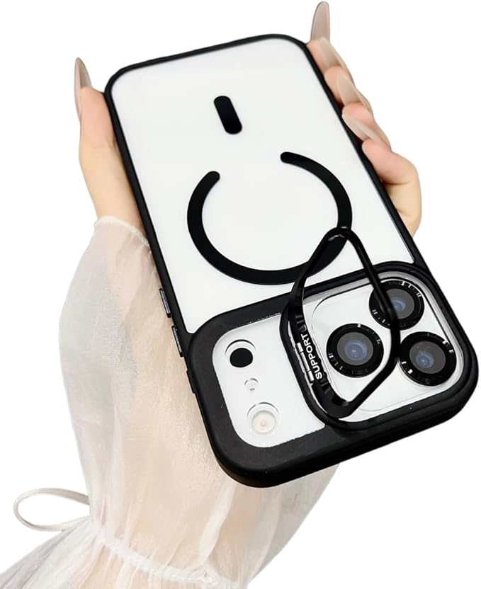 MagSafe対応 隠しスタンド付き iPhone 17 Pro Max 用ケース,対応 アイホン17Pro Max ケース カメラレンズ保護 い クリア アイフォン 全面保護 充電対応 保護 レンズフィルム付き (ブラック, iPhone 17 Pro Max)