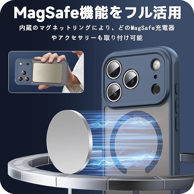 対応 iPhone 17 Pro Max ケース PC+TPU MagSafe対応 衝撃吸収 落下防止 米軍MIL規格取得 いPhone 17 Pro Max 半透明 カバー 黄ばみにくい スマホケース スマホカバー ワイヤレス充電磁気 薄型 (ダークブルー)SEIP17PMTPC-LAN