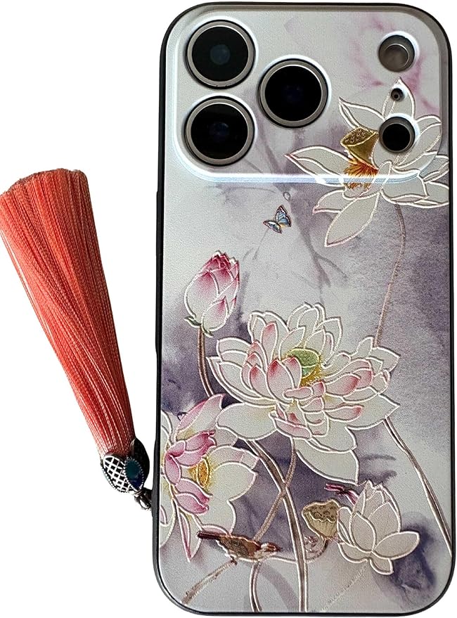 KOLO【蓮と蝶】iPhone対応 17 Pro Max スマホケース ハス はす 蓮華 ロータス カバー(白) iPhone17 Pro Max