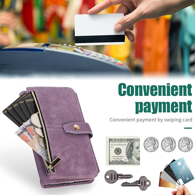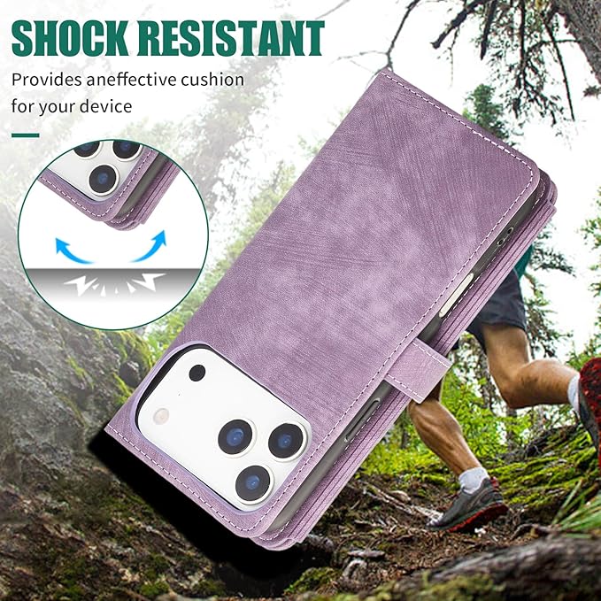 BonwFzin For IPhone 17 Pro MAX ケース 手帳型 ショルダー 適用 【 ストラップ 二本同梱】 アイフォン17プロマックス ショルダーケース IPhone17ProMAX 手帳 スマホケース ストラップホール付き バッグ マグネット 肩がけ 斜め掛け ファスナー ジッパー スタンド カード入れ レトロ パープル