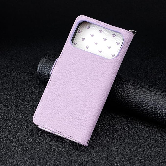 BOBOWTRK case for 電話カバーiPhone 17 pro max対応 アイフォン17 プロ マックスケース 手帳型 かわいい猫の足跡 ストラップ付き カード収納 スタンド機能付き マグネット開閉式 財布型 小銭収納 全面保護 耐衝撃 (B4-紫, iPhone 17 pro max)
