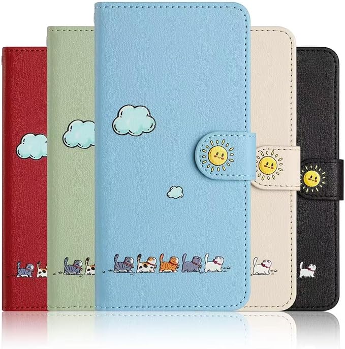 【使いやすいデザイン】右側が開いたデザインで、可愛い太陽のモチーフの開閉ボタンを採用。さらに便利なストラップ付きで携帯性がアップ。折りたたみ可能なスタンド機能も備え、動画視聴やビデオ通話がより快適になります。どんなシーンやファッションにも合う、シンプルで可愛くて実用的なデザインです。