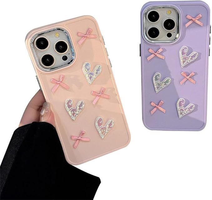 ケース For iPhone 17 Pro Max 愛 ハート 可愛い ボウノット パターン TPUカバー 衝撃吸収 落下防止 アイフォン 17 Pro Max 專用スマホ ケース カバー 薄型 特製スマホケース レンズ保護 スレ傷防止 女子力 ファッションクリエイティブかわいい かわいい携帯電話ケース(ピンク)