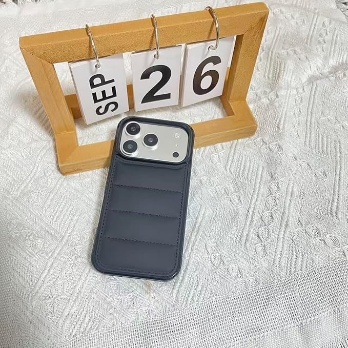 対応 アイフォン17 Pro Max ケース スマホケース iphoneケース 可愛い かっこいい ガール ボーイ 韓国 おしゃれ お洒落 おもしろ かわいい カップル ファッション に触れる やわらかい [ハイブリッド] ダウンジャケット ふかふか ファッション 保護ケース (17 Pro Max,黑 #1)