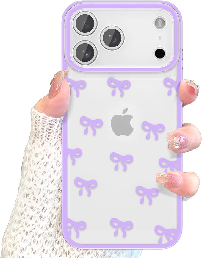 EYZUTAK ケース 対応 iPhone 17 Pro Max 用の 保護ケース かわいい リボン 韓国 おしゃれ カバー 可愛い 透明TPU薄型 軽量 擦り傷防止 保護ケースカバー - パープル
