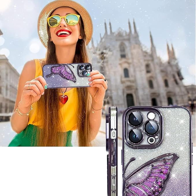 斬新で個性的なデザインの携帯ケースが必要なら、これはいい選択です。美しい蝶、きらめくグラデーションの紙詰まり、携帯ケースはキラキラしていて面白い。