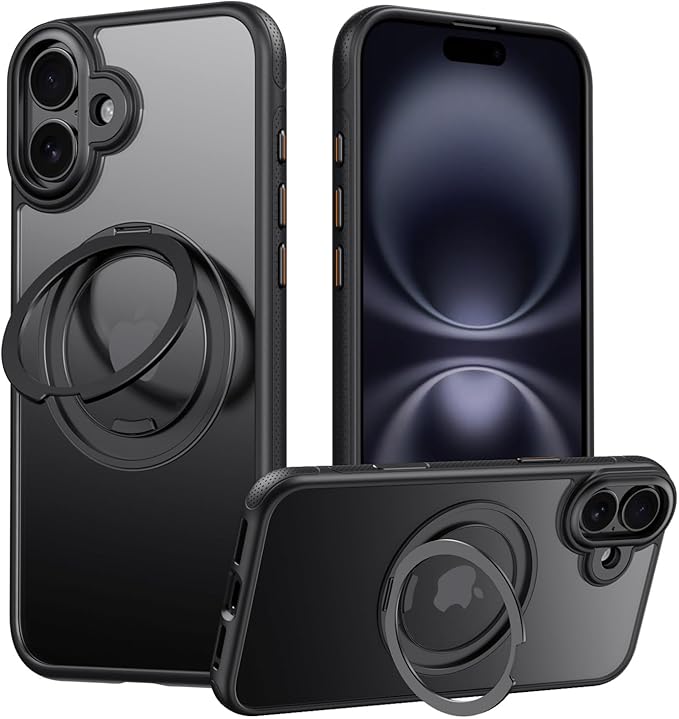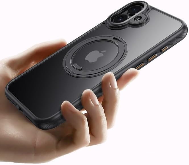 iPhone17 Pro Max MagSafe対応 ケース 360 回転しスタンド+リング付き 【カメラコントロールボタンの範囲】ゴムオイルコーティングアイフォン17 プロ マックスカバースタンド機能 縦横両対応 HILEGENERカメラレンズ保護 半透明 マット感 隠しスタンドケース あいほん17 Pro Max-ブラック